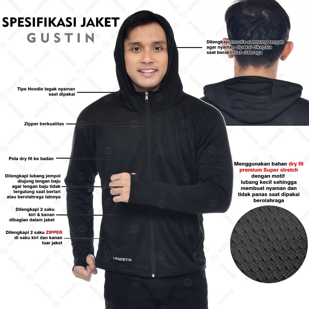 Jaket Olahraga Pria Dryfit Premium Gustin Jacket Gym dan Lari