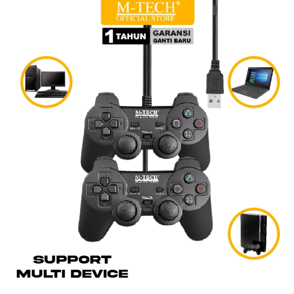 GAMEPAD USB GETAR JOYSTICK SINGLE DOUBLE STICK HITAM TRANSPARAN M-TECH ORIGINAL