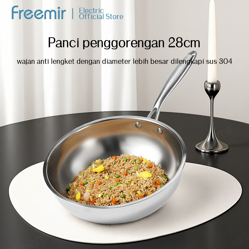 Promo Freemir Wajan Stainles Steel Sus 304/316 Ukuran 24/28 Cm Masak Sehat Zero Coating Foodgrade