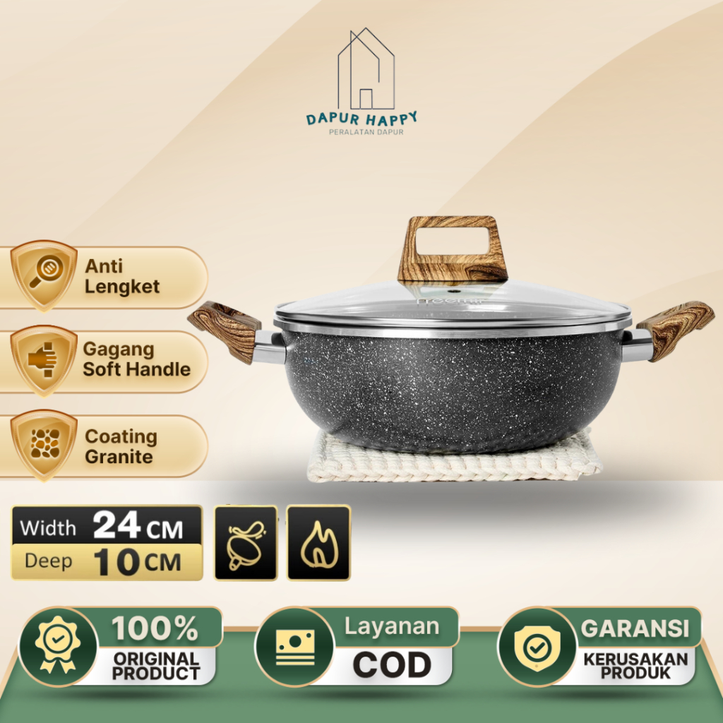 Freemir Wajan Deep Wood Series Anti Lengket Panci Hitam/Beige 24Cm/20Cm Kedalaman 10Cm/8Cm Dasar Tunggal /