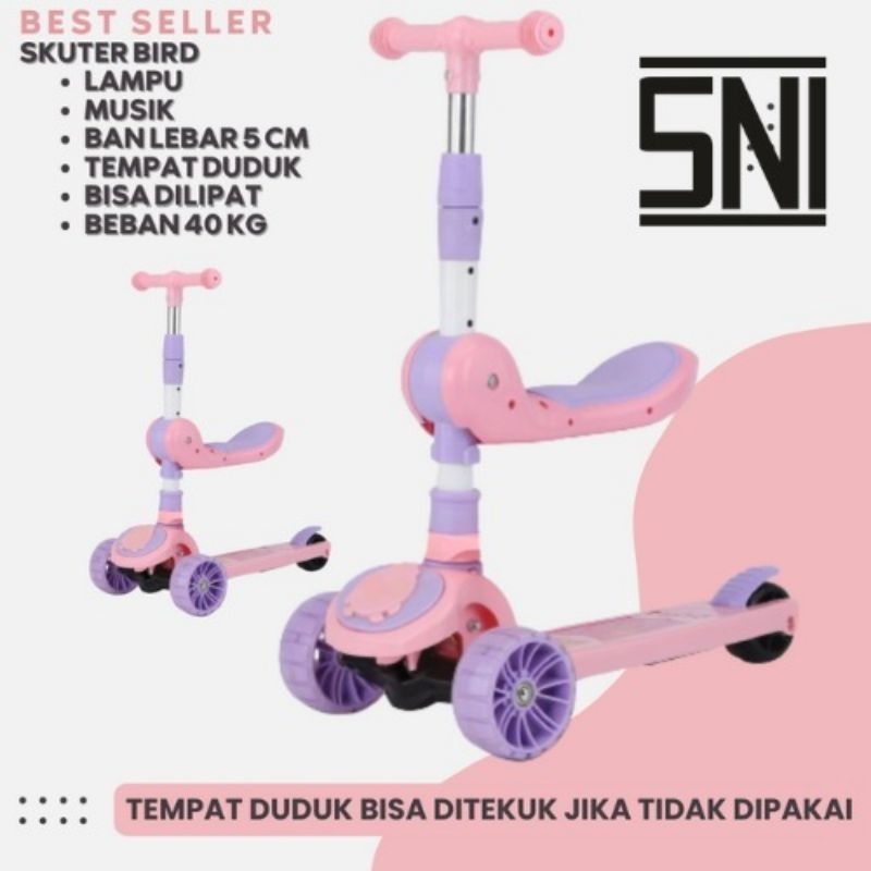 Scooter Outdoor Indoor | Kickboard Skuter 2In1| Otoped Anak Lampu Roda 3 | Skuter Anak Roda 3 Roda Dengan Kursi Lampu Da