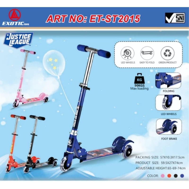 Scooter Skuter Otoped Besi Anak Rem Tangan Exotic St-2020 St 2015 / Vr 09B Karakter Justice Bahan Kokoh
