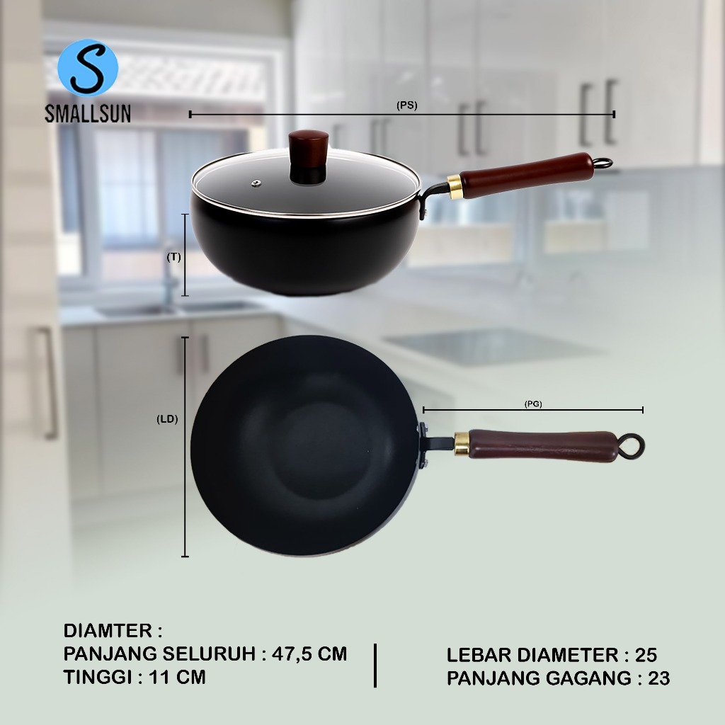 Wajan Kuali Bahan Baja Premium Dengan Penutup Kaca Anti Lengket Diameter 24Cm Best Quality