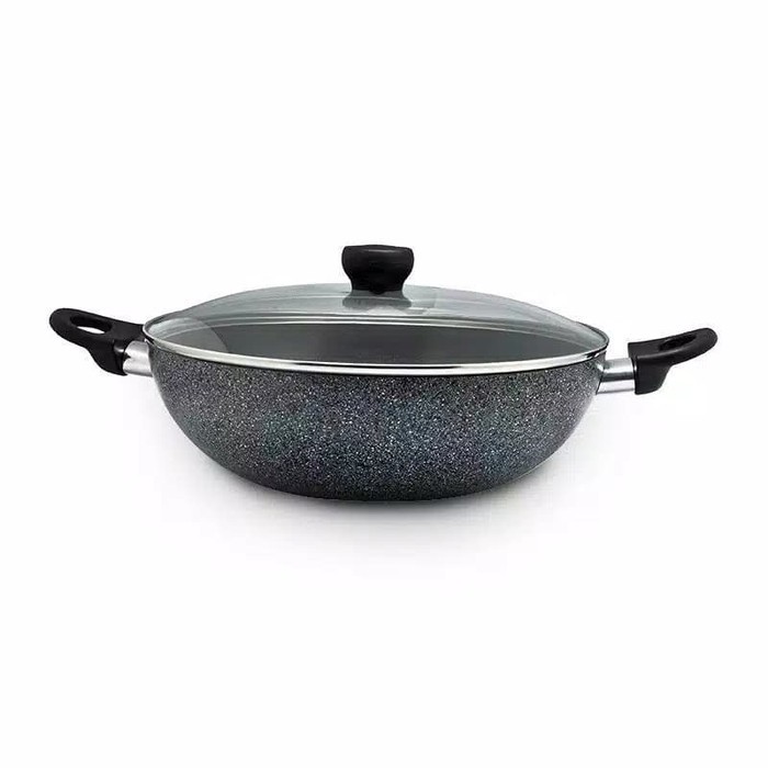 Maxim Neostone Wok Marble Ceramic Wajan Penggorengan Anti Lengket 30 Cm + Tutup Kaca