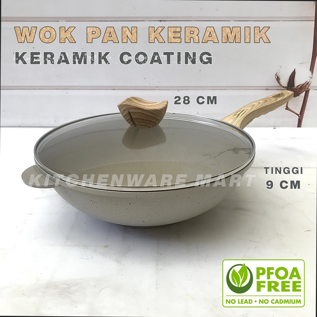 Wokpan Keramik 28 Cm Tutup Kaca Wok Ceramic Pfoa Free - Wajan Keramik Panci Wajan Penggorengan Fry