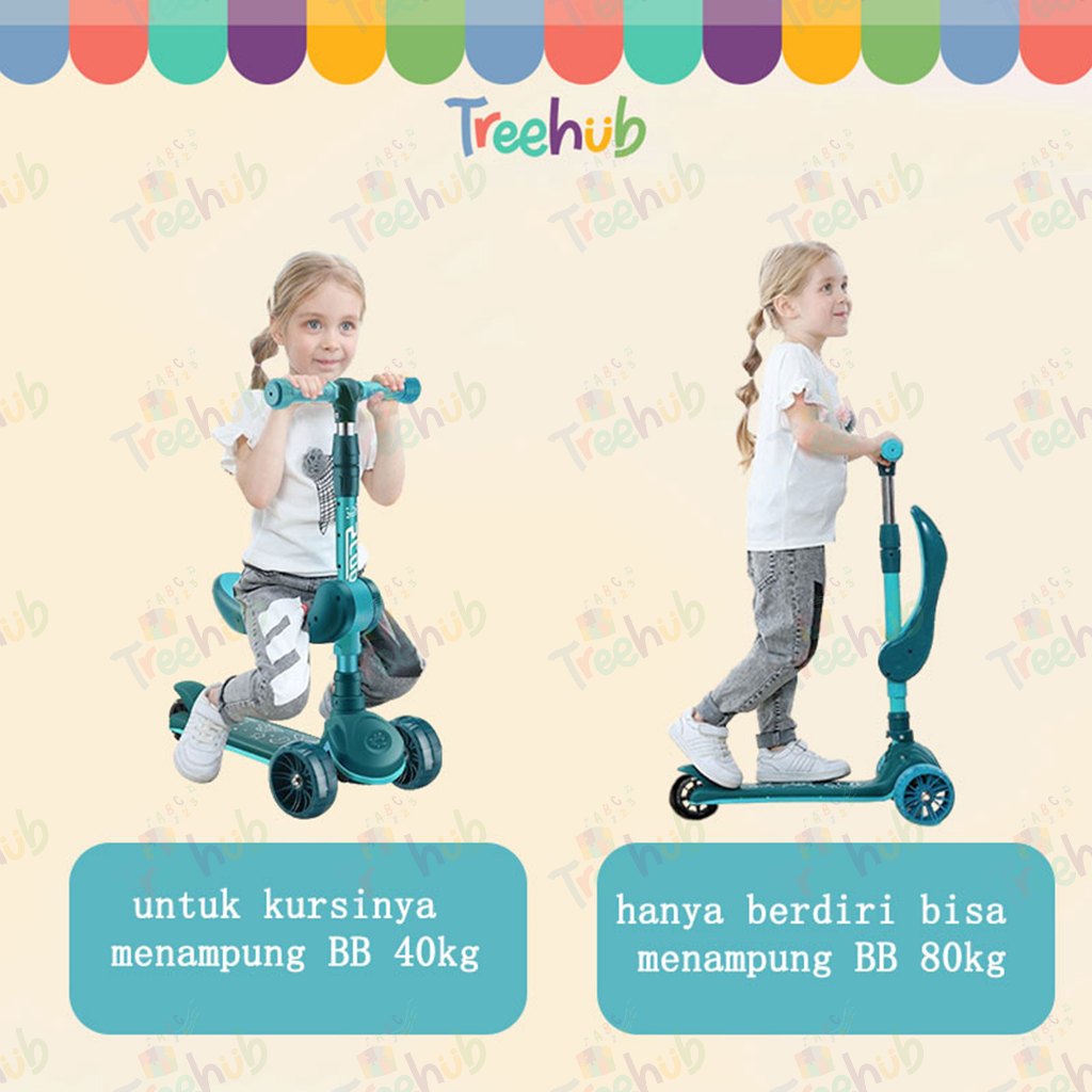 Treehub 3In1 Scooter Anak Skuter Otoped Sepeda Duduk 3 Roda Multifungsi Ada Musik Lagu Lampu Roda Nyala/Sekuter Mainan A