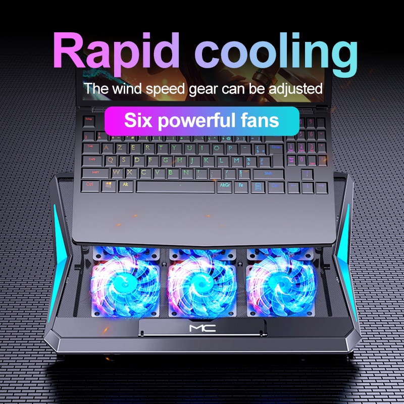 MACCOO 6 Fans LapT0P Cooling Pad Led Screen Two USB rt Cooler Pad RGB Light Notebook Stand for 11-17 Inch