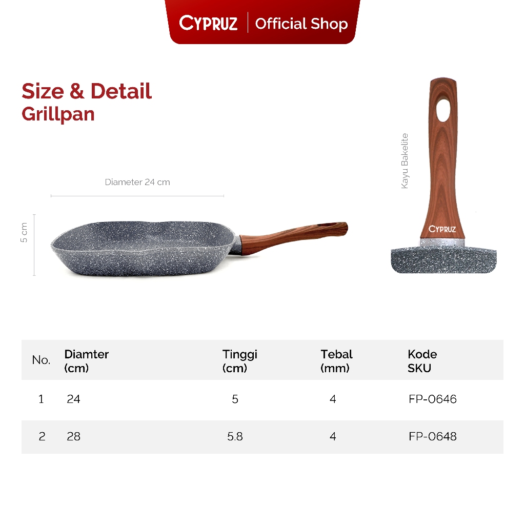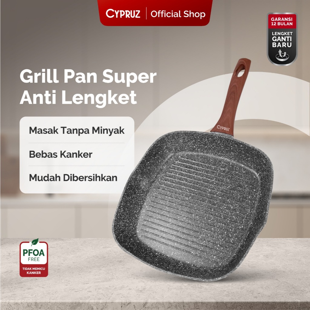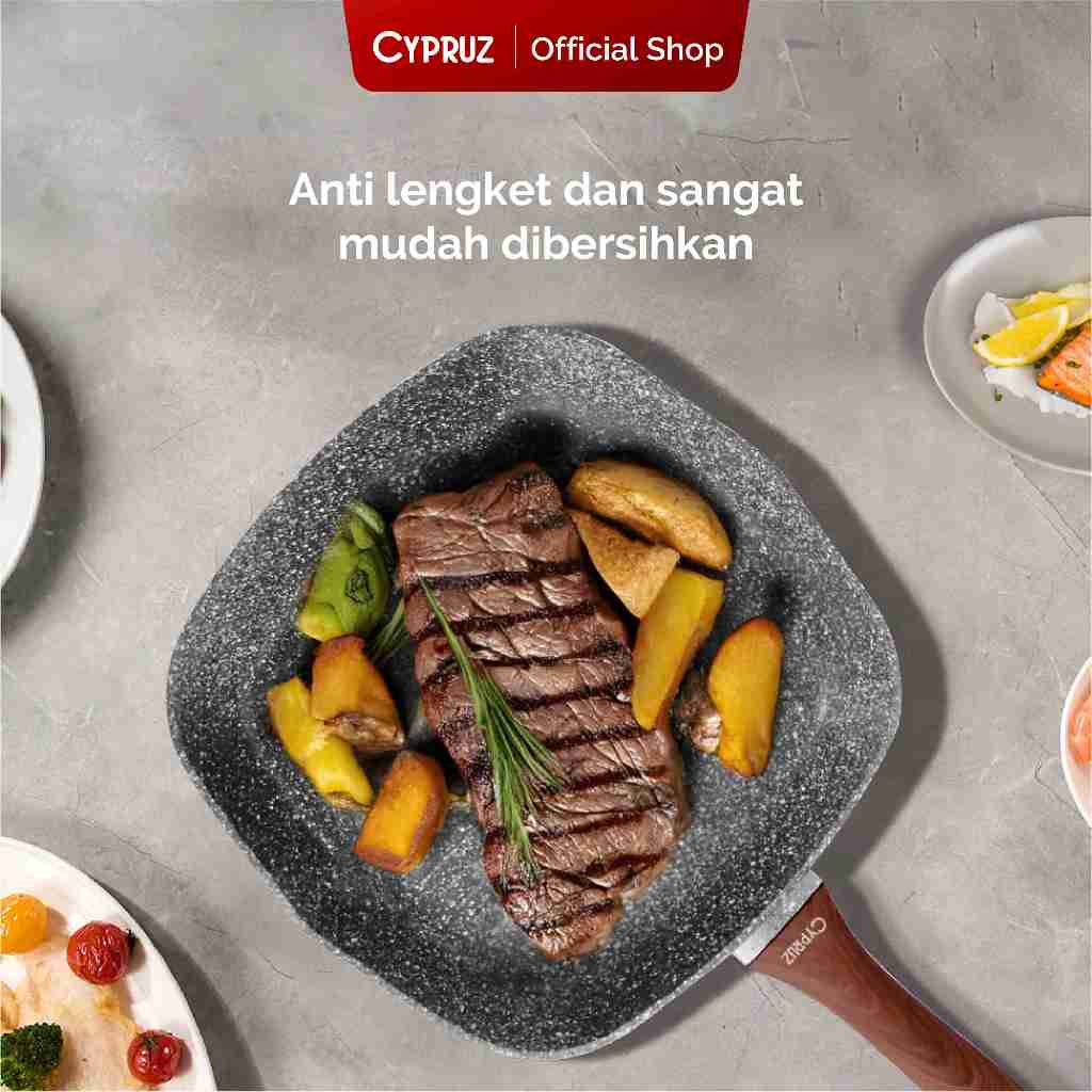 Cypruz Wajan Panggangan Anti Lengket Grill Pan Grey Marble Series 28Cm