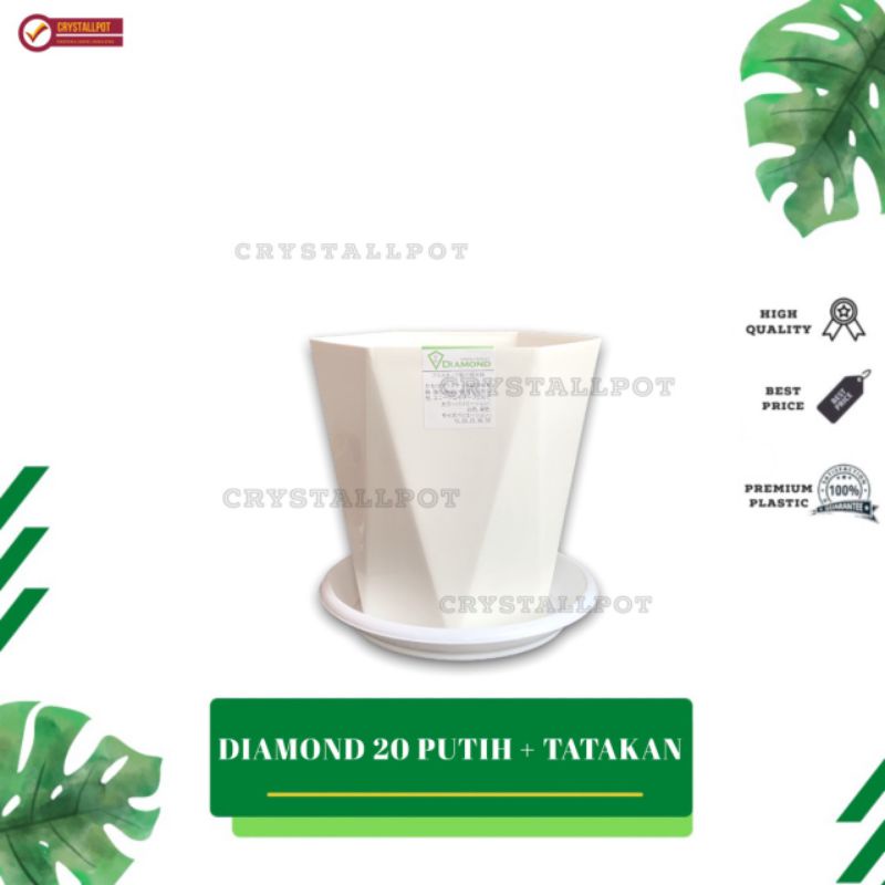 POT BUNGA TANAMAN TINGGI TABITHA D14M0NDS 20 PUTIH + TATAKAN PUTIH