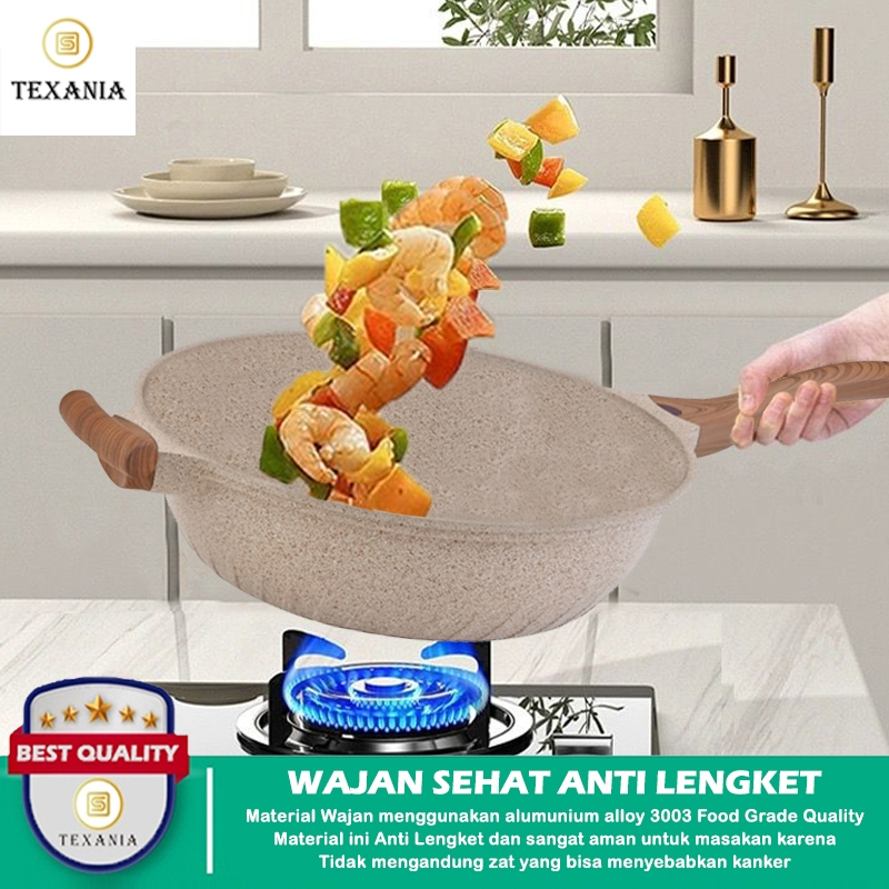Texania Wajan Batu Medis Presto 32Cm Bahan Alumunium Quick Heat 2In1 3003 Double Bottom Free Spatula Silikon+Capitan Sta