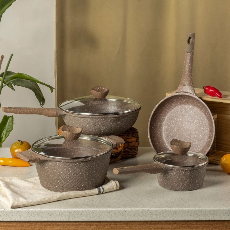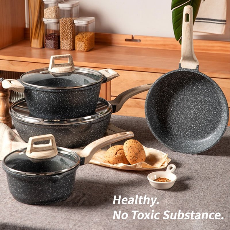 Antilengket Peralatan Masak 7Pcs Peralatan Dapur Hitam Wajan Granite Jerman Set Panci Dan Wajan Paket Keluarga Set