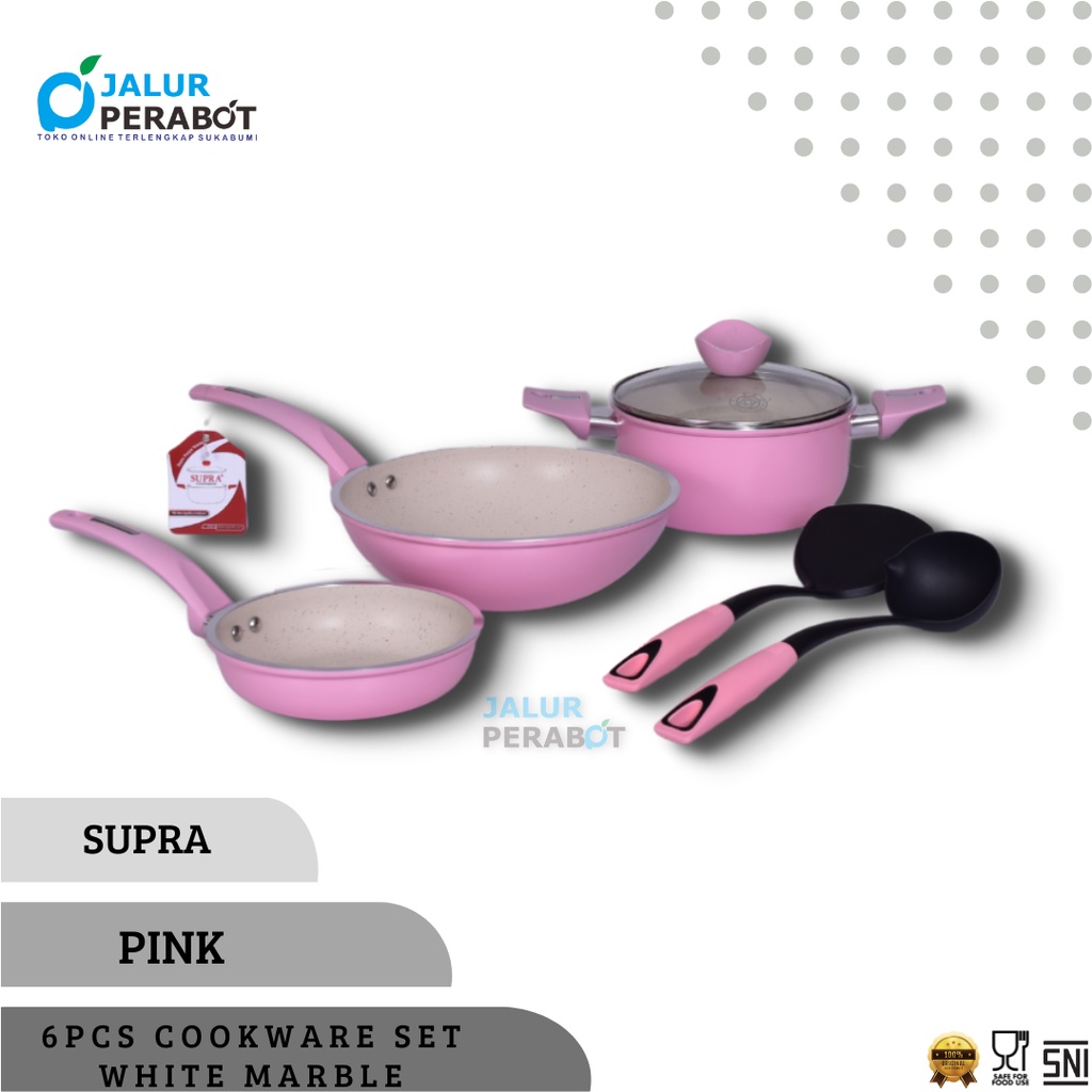 Panci Set Supra 6Pcs White Marble / Cookware Set Anti Lengket Pastel Series
