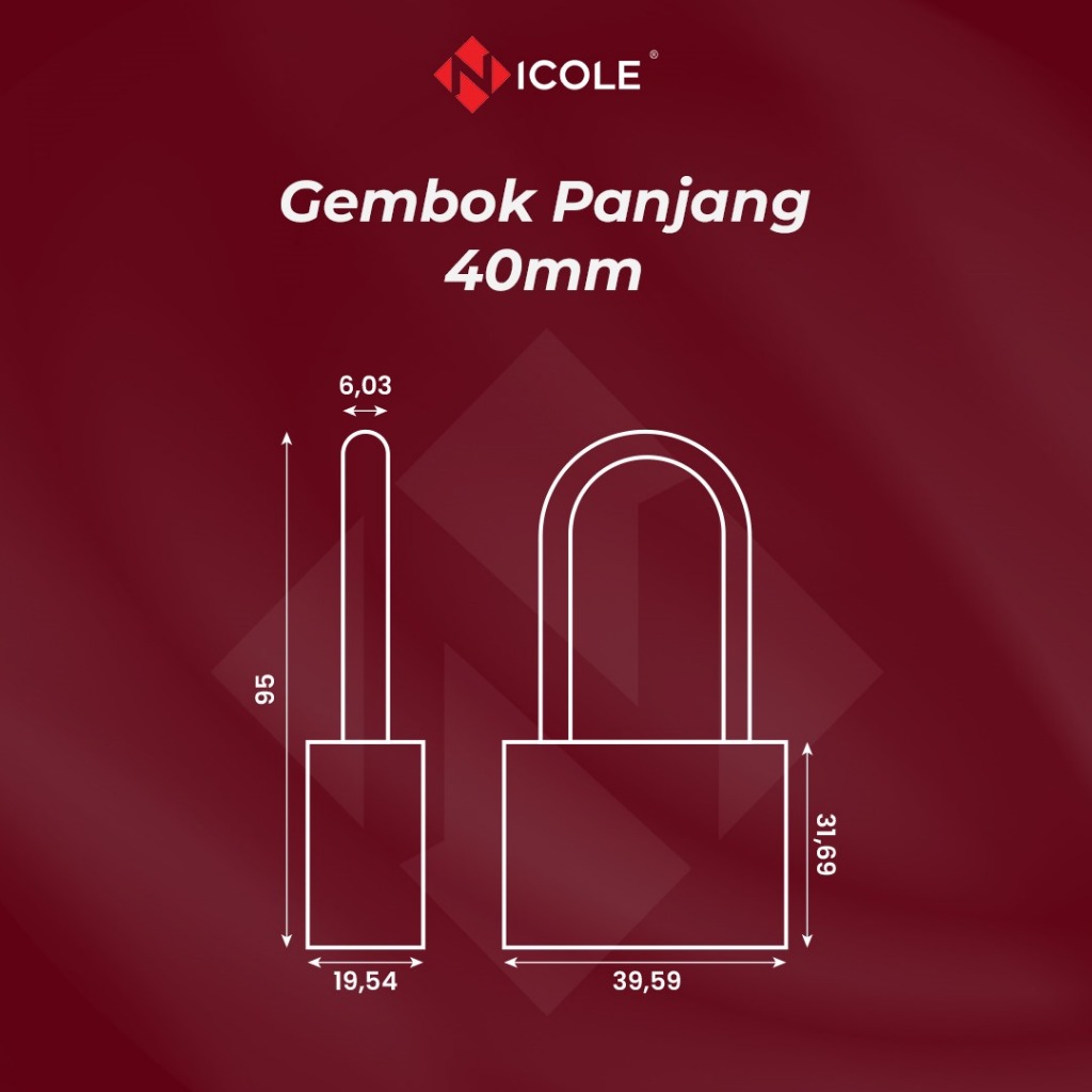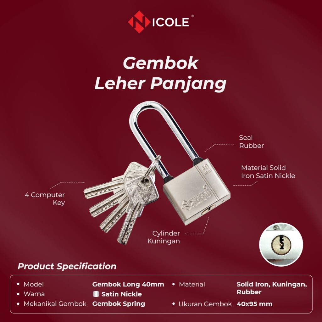 Nicole Gembok Pintu Rumah Besi / Gembok Pagar / Padlock Long 40mm Leher Panjang