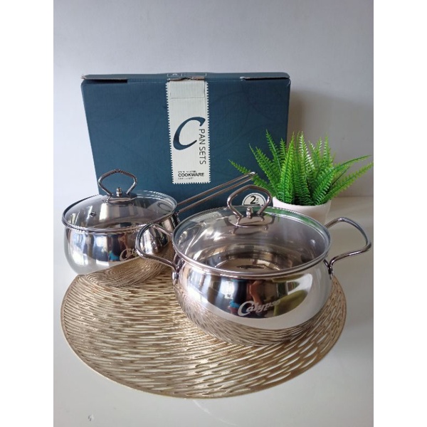 Calypso Panci Set 2 Pcs 16Cm 18Cm Panci Tutup Kaca Stainless Steel