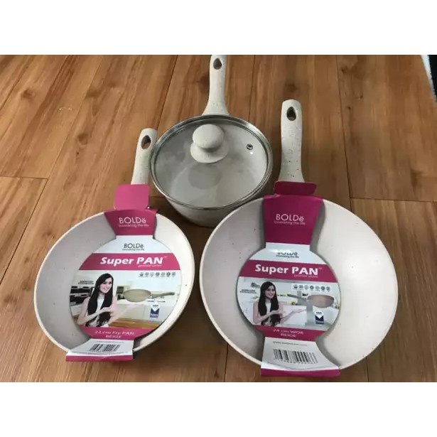 Bolde Panci Wajan Set Super Pan Granite Set Beige 3 + 1 Pcs Super Pan Dengan Coating Granite Ceramic