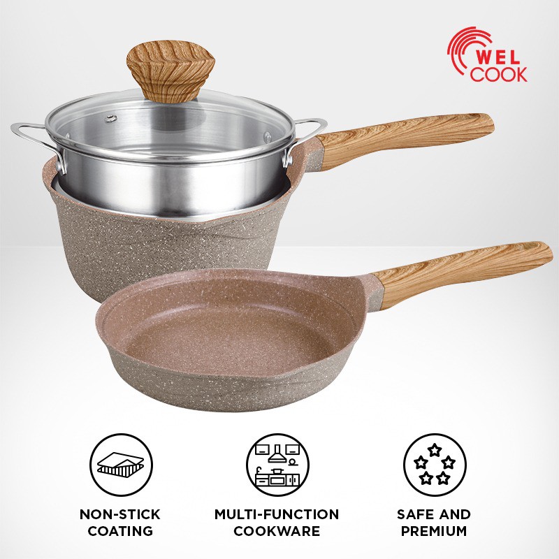 Welcook Panci & Saucepan Granite Elegante Antilengket 4 Pcs Set