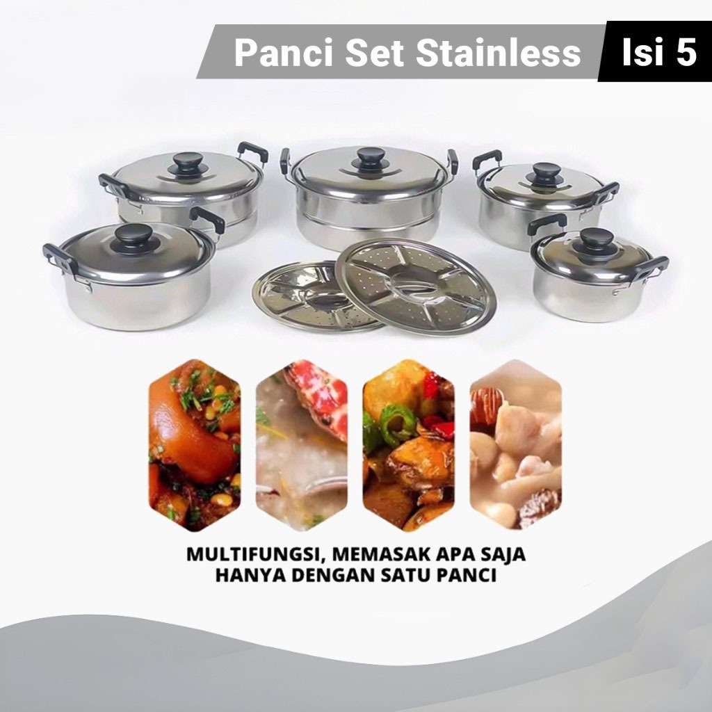 Qme 12In1 Panci Steamer Set Stainless Isi 5 Pcs + 2Pcs Kukusan Panci Bahan Tebal Premium/Panci Stainless Set