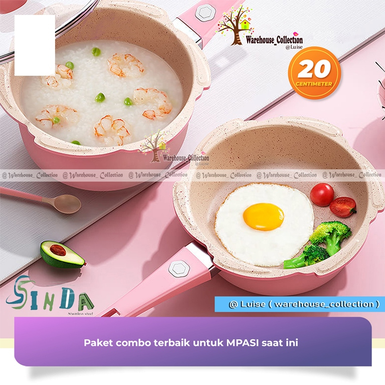 Panci Set Sakura 2Pcs + Tutup Elegant/ Granit Wajan Keramik Food Grade //Wajan/Panci Mpasi Sinda
