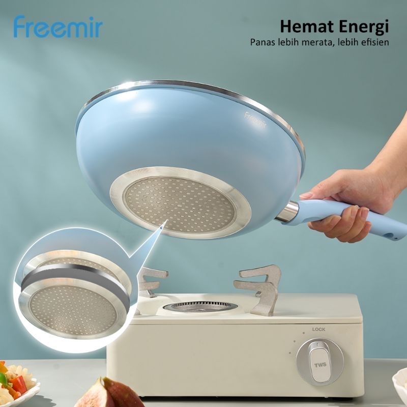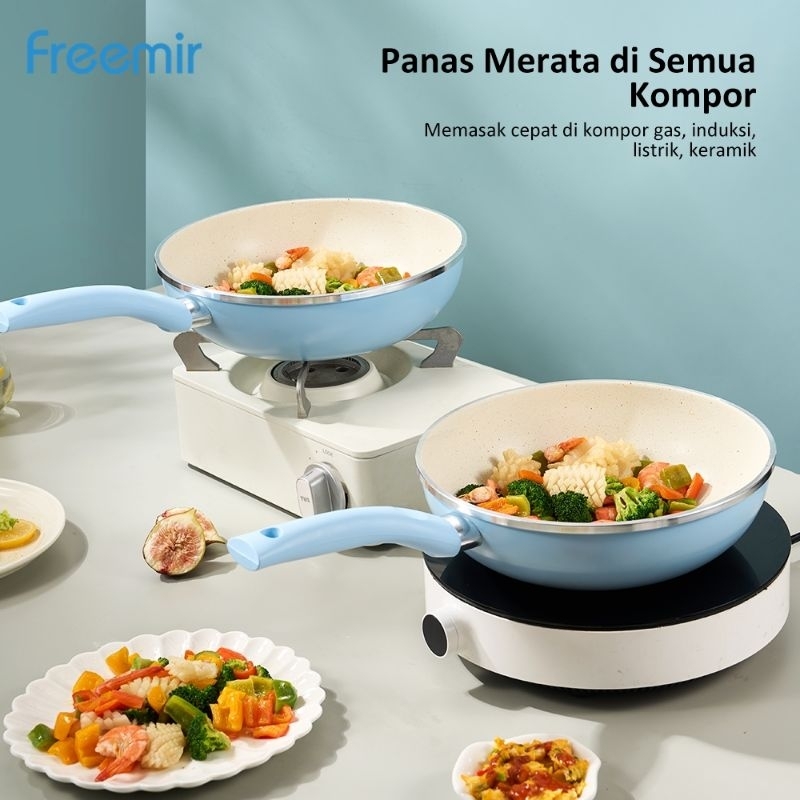 Freemir Wajan 24Cm Cekung Anti Lengket Baby Blue Ready Stok