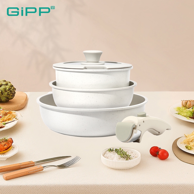 Gipp 5 Pcs Set Peralatan Masak Panci & Wajan Granite Anti Lengket – Gagang Lepas Pasang Bebas Pfas & Ptfe & Pfoa