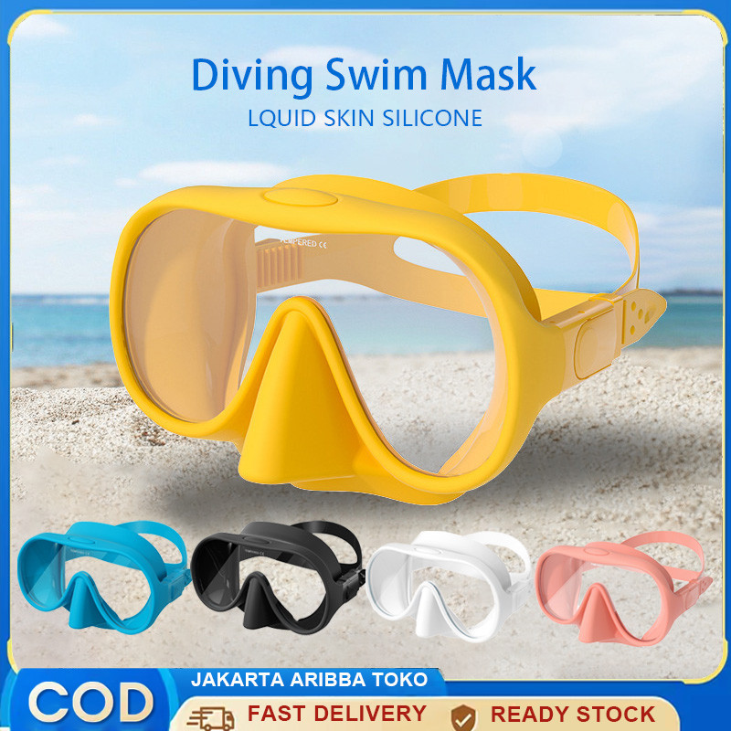 Masker Selam Anti-kabut Diving Swim Mask Snorkeling Kaca Tempered 180° Full Silicone Cair Lensa Tunggal Anti Gores
