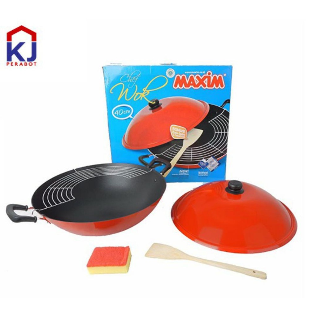 Maxim Wajan Teflon 40Cm + Tutup Chef Wok 40 Cm Teflon Besar