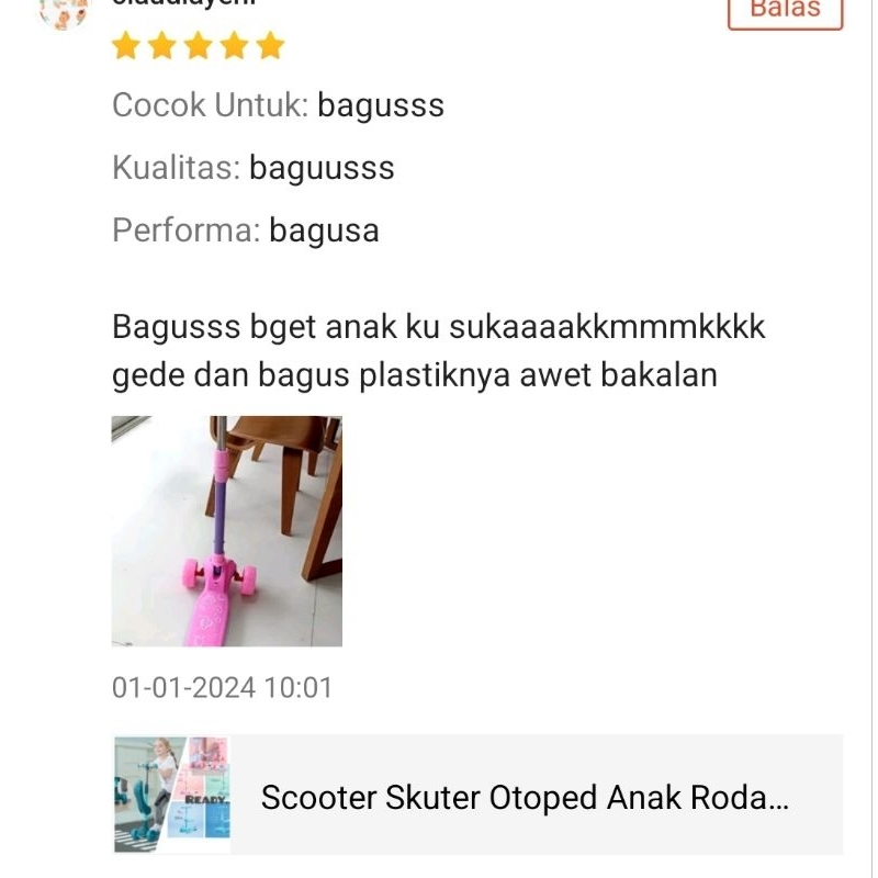 Scooter Skuter Otoped Anak Roda 3 Roda Nyala Rangka Kuat Awet Jaminan Kualitas 1-12 Tahun Barang Mulus No Minus No Cacat