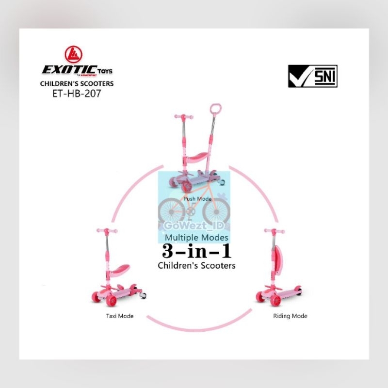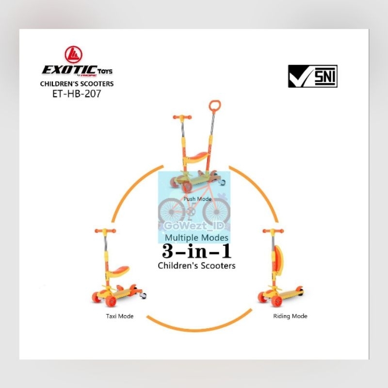 Scooter Skuter Otoped Anak Exotic Hb 207 Bangku Duduk Lipat Musik (3 In 1) | High Quality