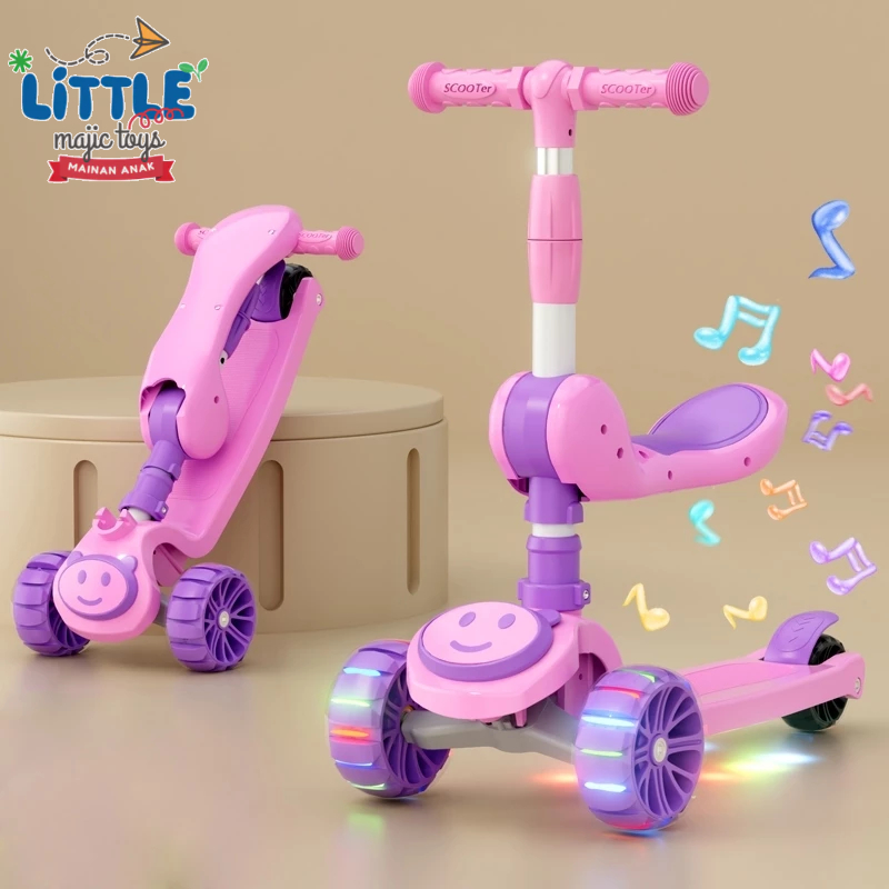 Mainan Skuter Anak Scooter 2In 1 Otoped Roda 3 Dengan Lampu Musik Dan Music Skuter Bisa Dilipat