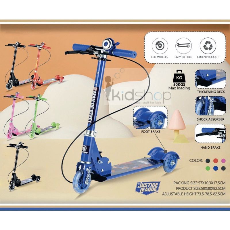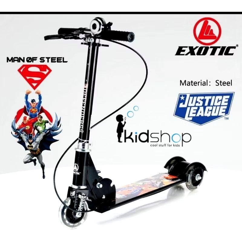 Scooter Skuter Anak Otoped Rem Handle Brake Anak Merk Exotic Besi Steel Justice League Free Bell New Promo