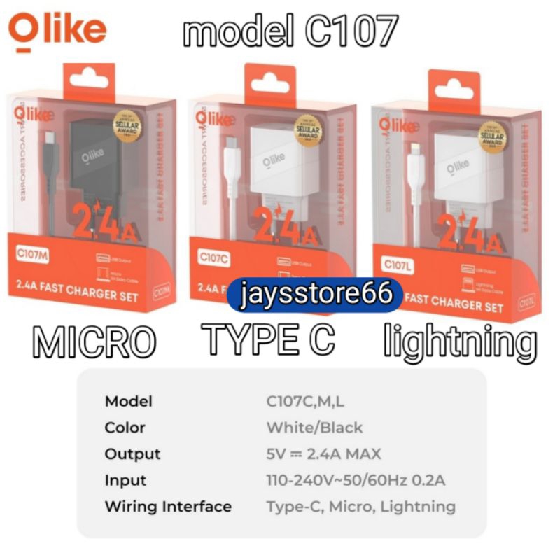 OLIKE Charger wer MC02 MICRO & MC02C TYPE-C & C104 1.5A C107M C107C C107L 2.4A & C201M C201C C201L 2USB Free Cable
