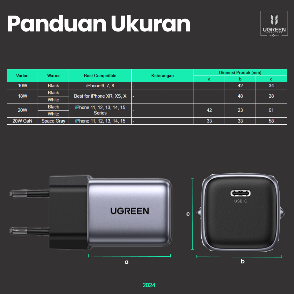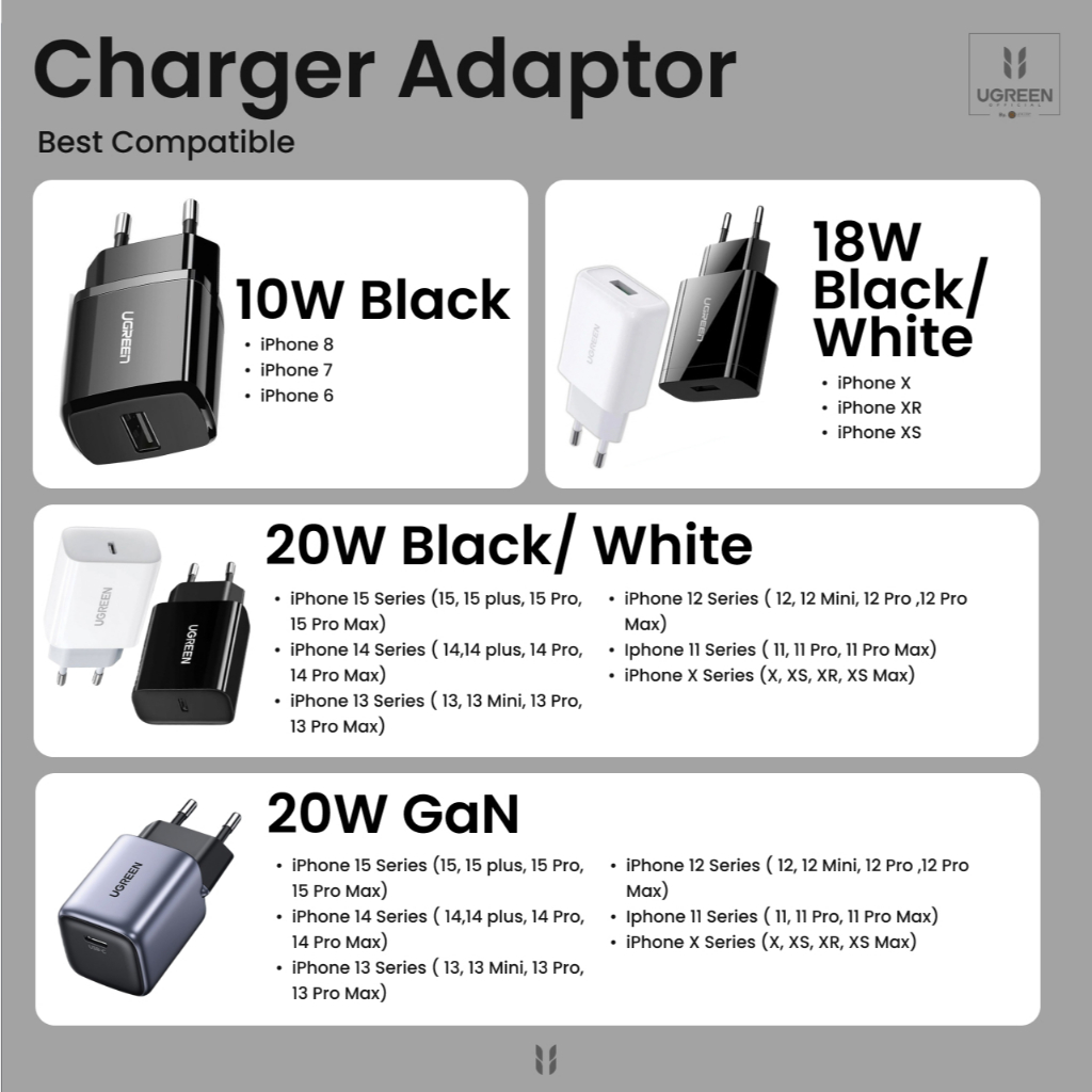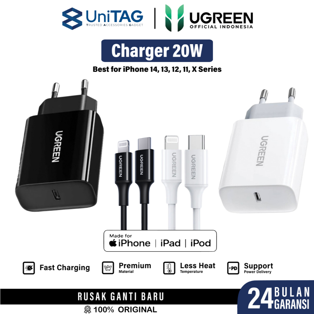 Kepala Charger for iPhone 14 13 12 11 XR X XS Pr0 Max Plus UGREEN Adaptor Charger 20W 18W 10W Type C Fast Charging