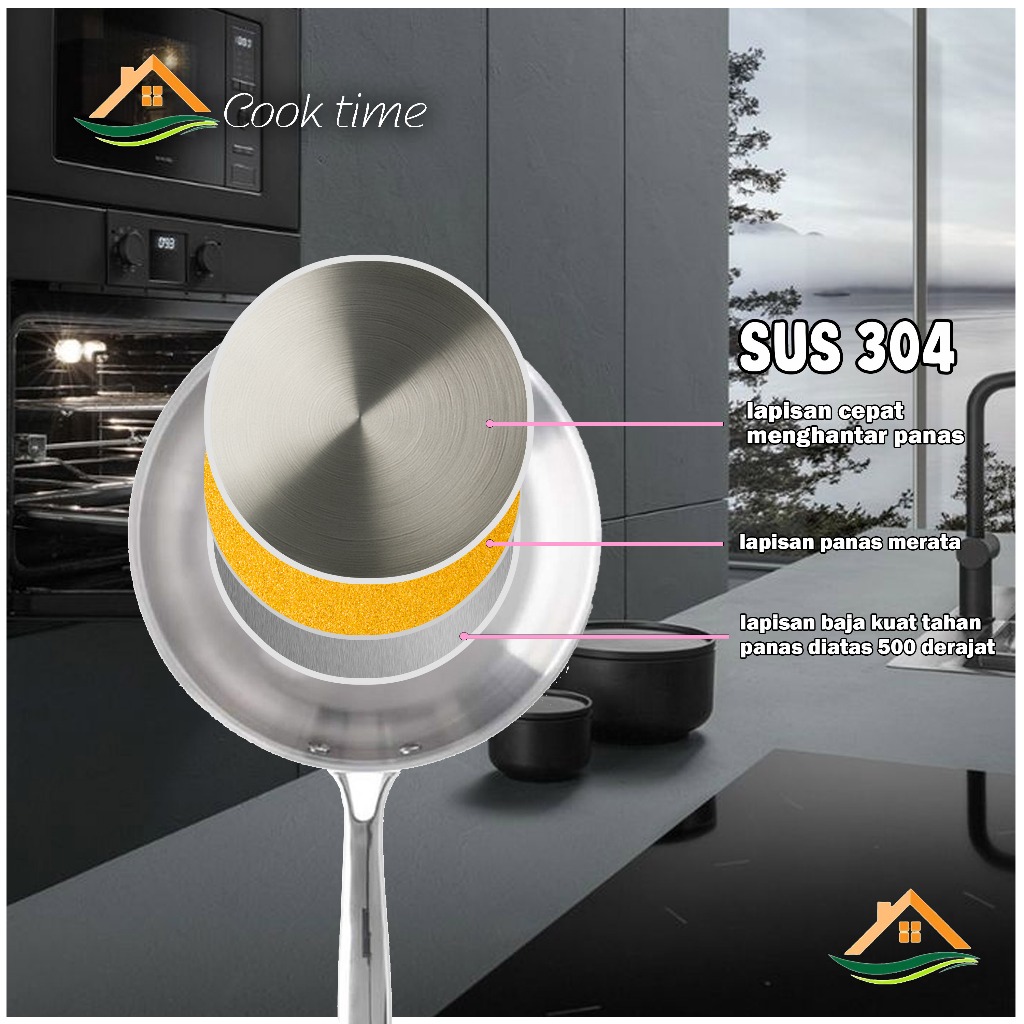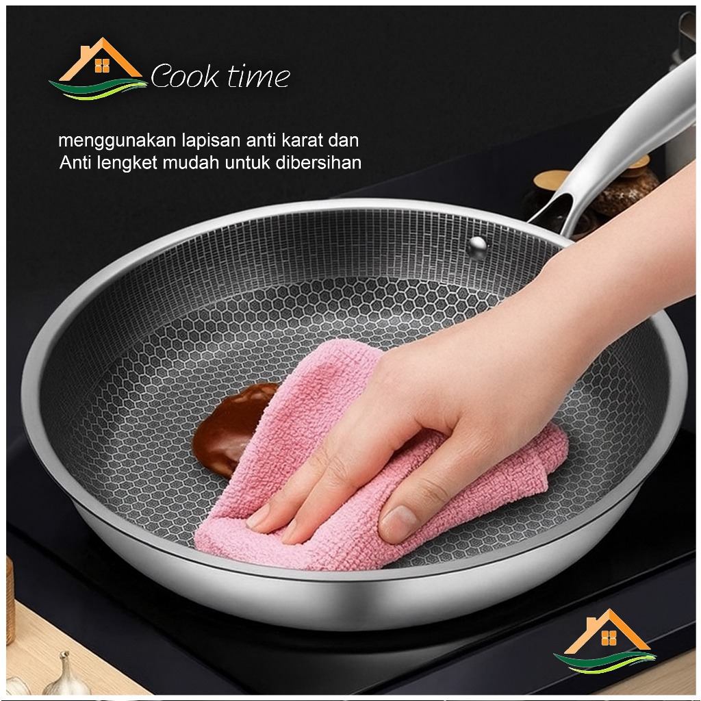 Wajan Stainless Fry Pan Mewah Wajan Penggorengan Bahan Tebal Best Quality Anti Lengket
