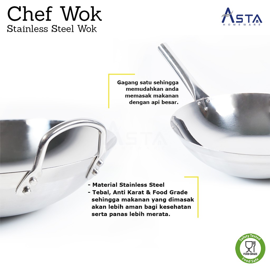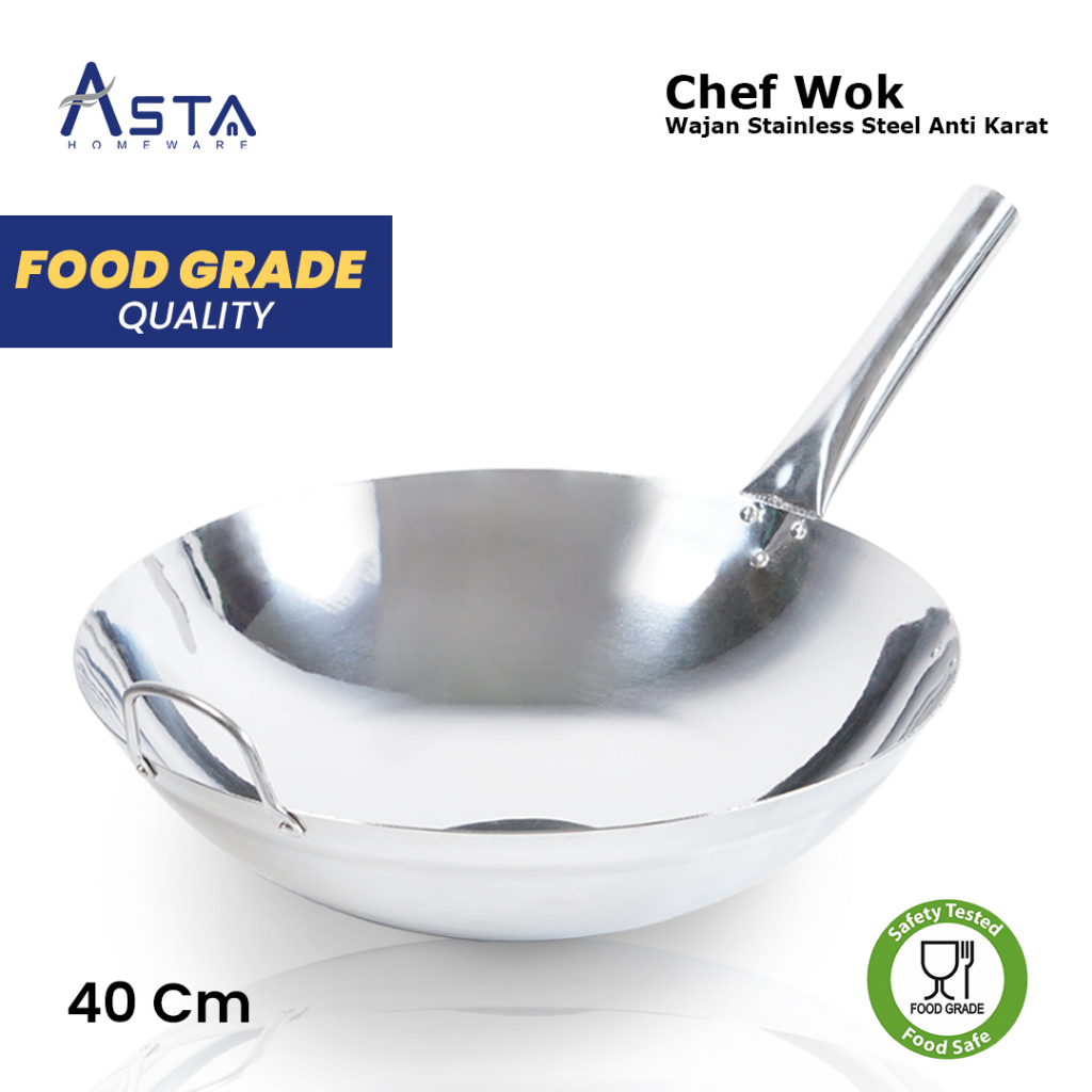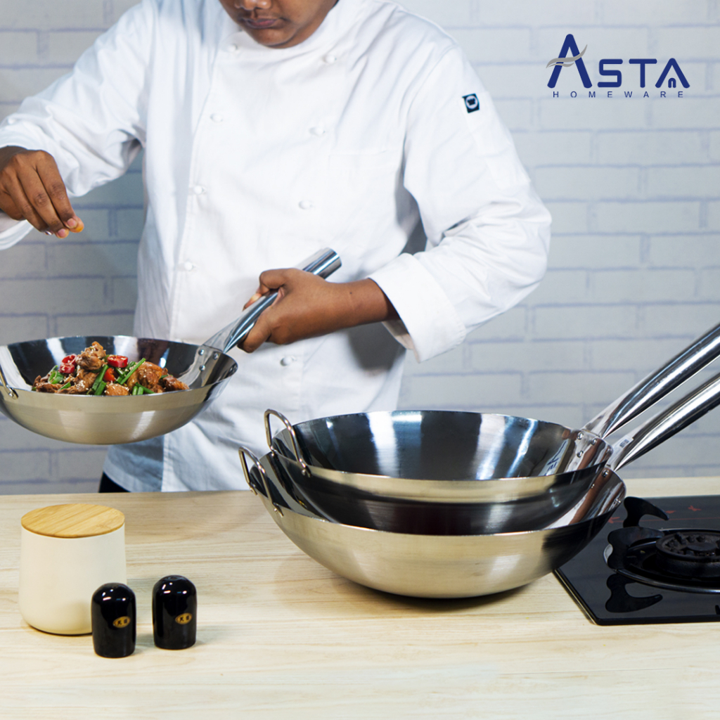 Wajan Stainless Steel - Tahan Karat - Wok Penggorengan - Tebal Gagang Satu 40 Cm | Asta Homeware