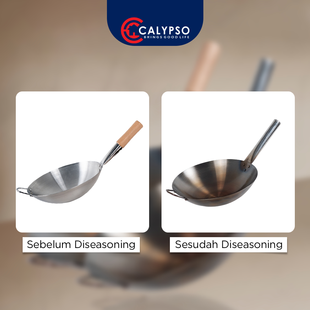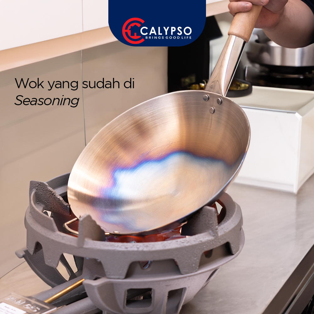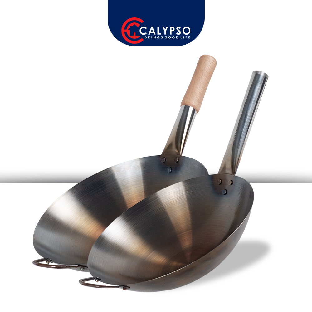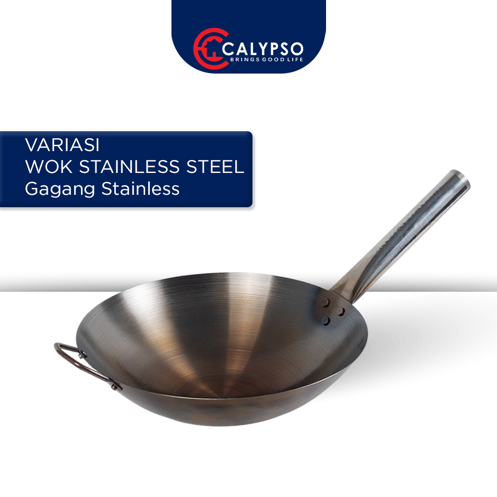 Calypso Wok Kuali Wajan Penggorengan Stainless Steel Sudah Seasoning 30-40Cm Anti Lengket