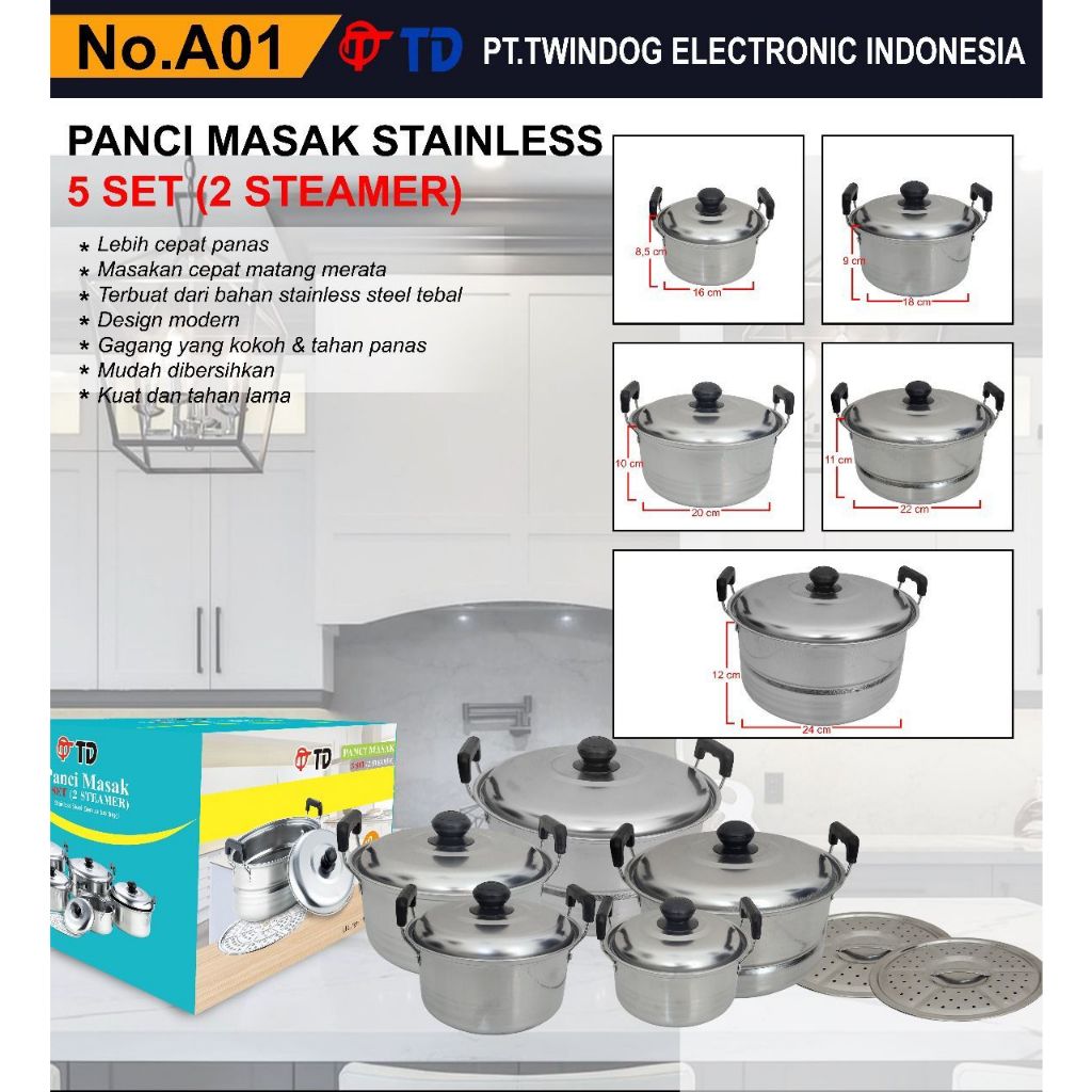 Panci Steamer Set 5 Susun Tutup Stenlis / Panci + Steamer Set 5 Susun Stainless