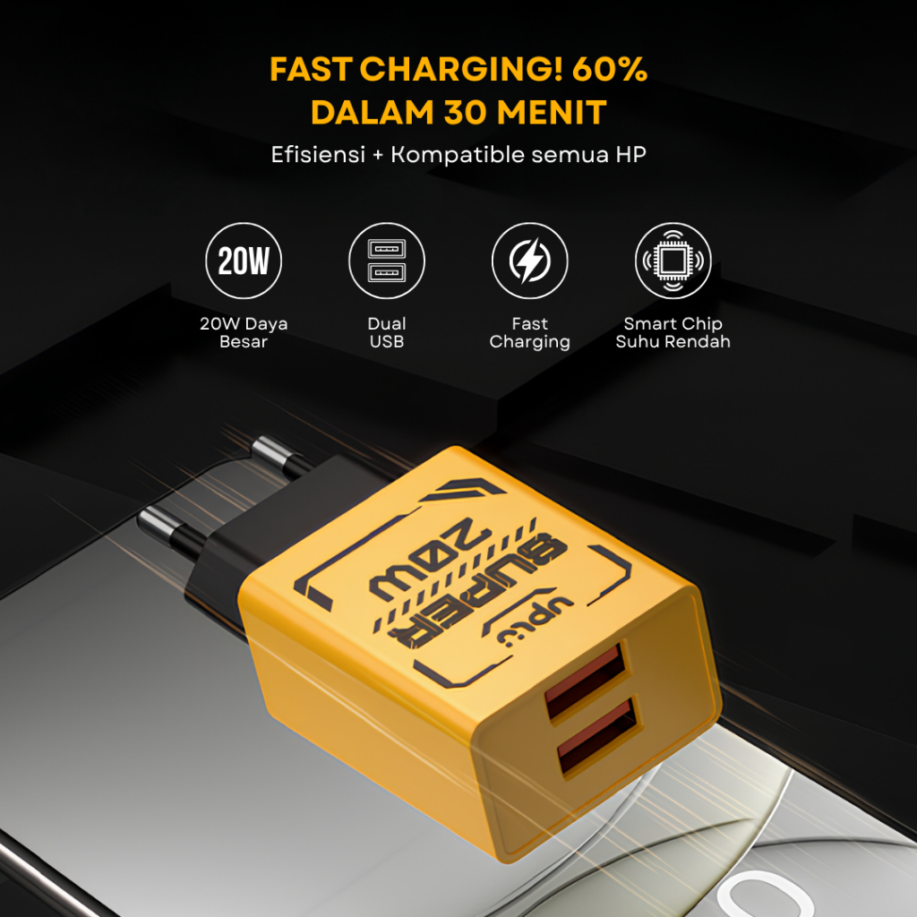 HUADRRE x UPLU Super 20W Adaptor Kepala Charger GaN5 Pr0 Dual USB