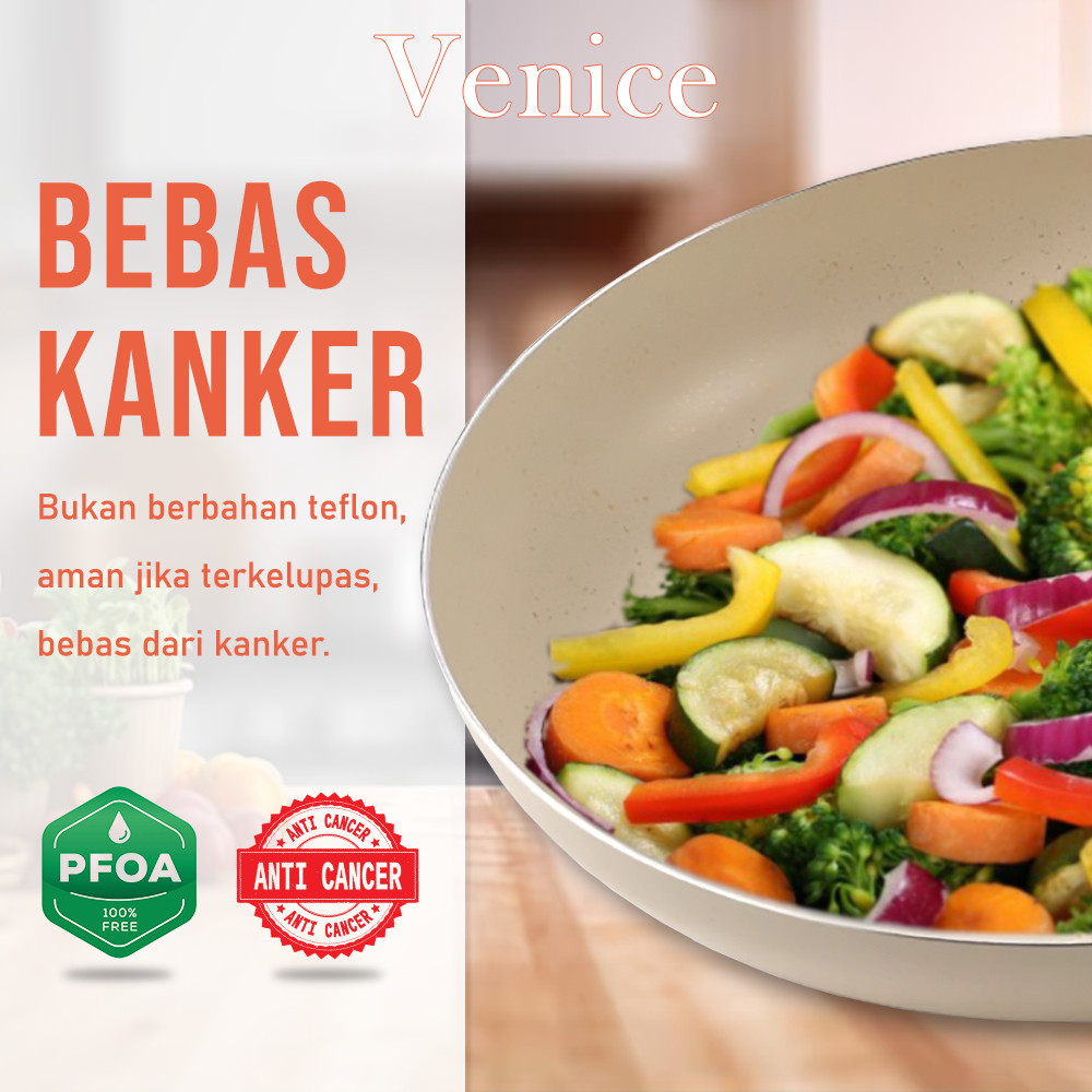 Venice 7Pcs Panci Set Wok Sauce Fry Pan 2Pcs Plus 3 White Spatula Aesthetic Cookware Set Pan