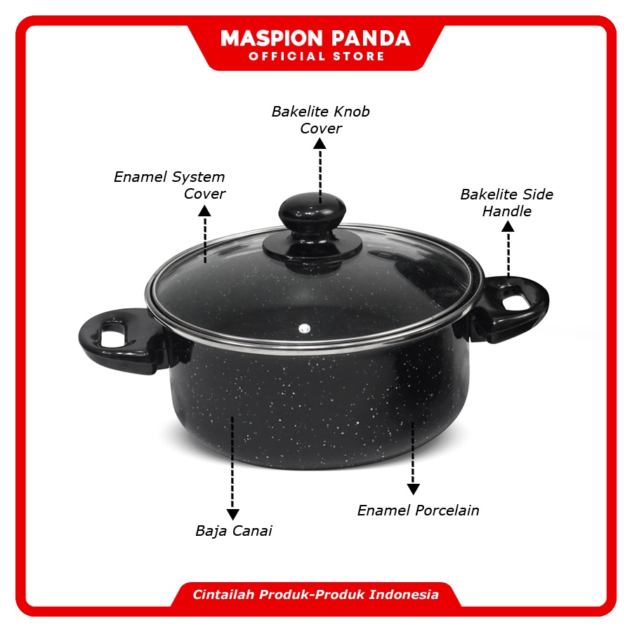 Maspion Panda Panci Set Enamel Marbel Dengan Tutup Kaca Tipe 155