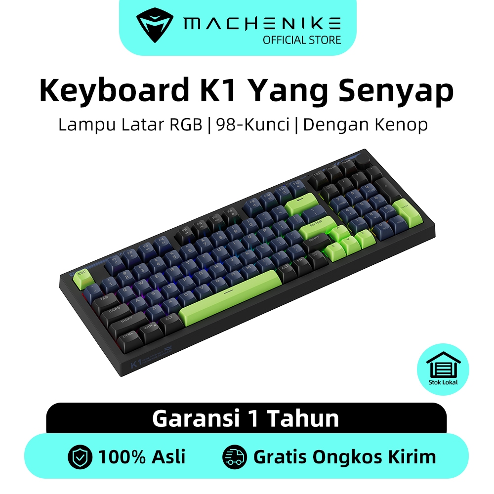 Keyboard Gaming Berkabel Machenike K1 Tata Letak 98 Tombol Keyboard Senyap dengan Lampu Latar RGB dan Tombol dan Pa