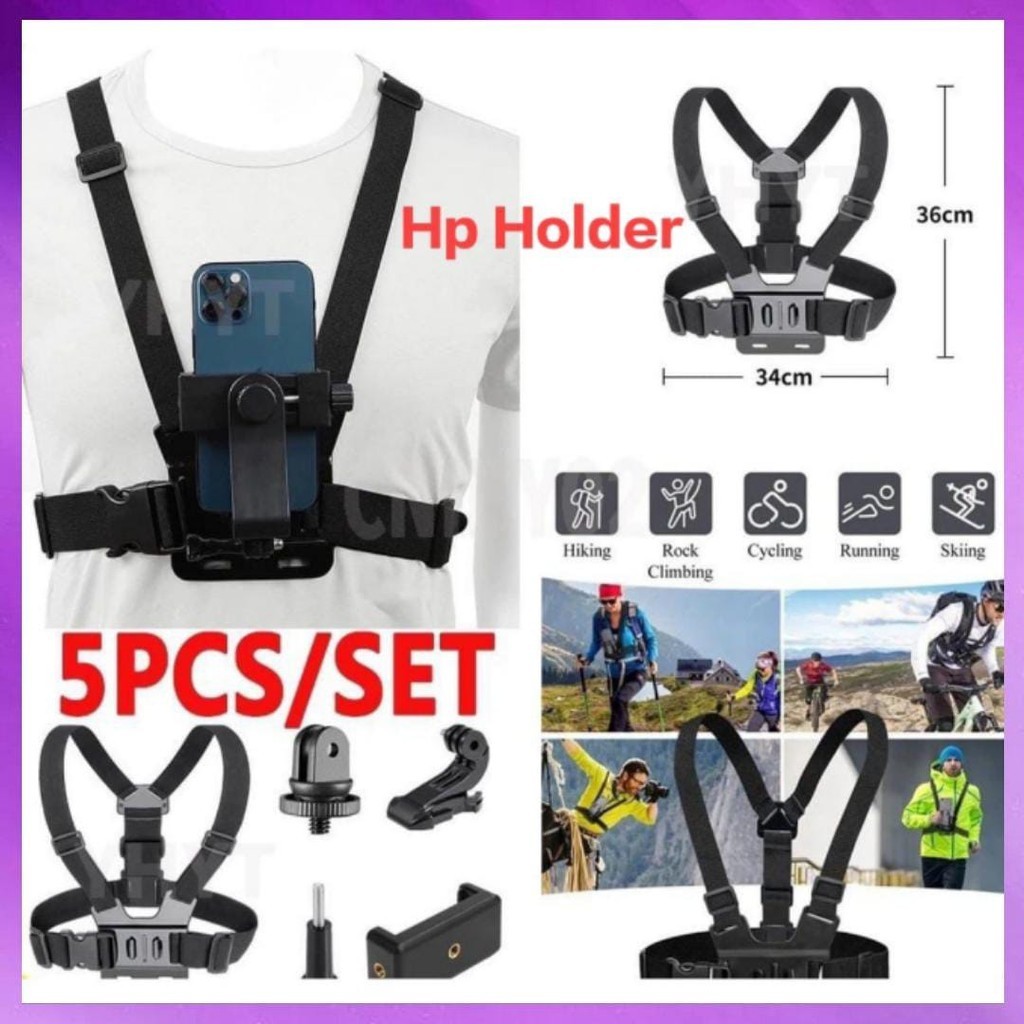 Jhonweis Chest Strap Tali Dada Pegangan Handphone & Mount Kamera Body Belt Holder HP Clip Clamp 360 Go Pr0 CAM Dudu