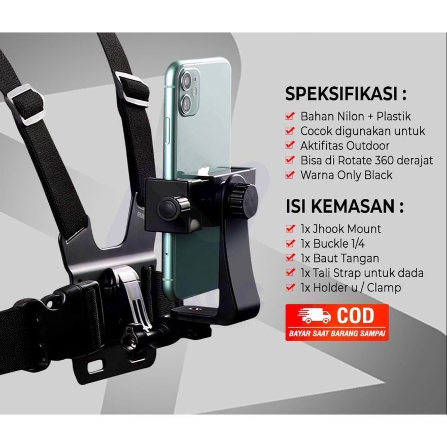 Wwen Chest Strap Tali Dada Pegangan Handphone Mount Kamera Body Belt Holder HP Clip Clamp 360 Go Pr0 CAM Dudukan Sm