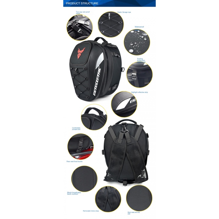 Motocentric Mc-0102 Motorcycle Tailbag Riding Helmet Bag - Tas Ransel Jok Belakang Motor