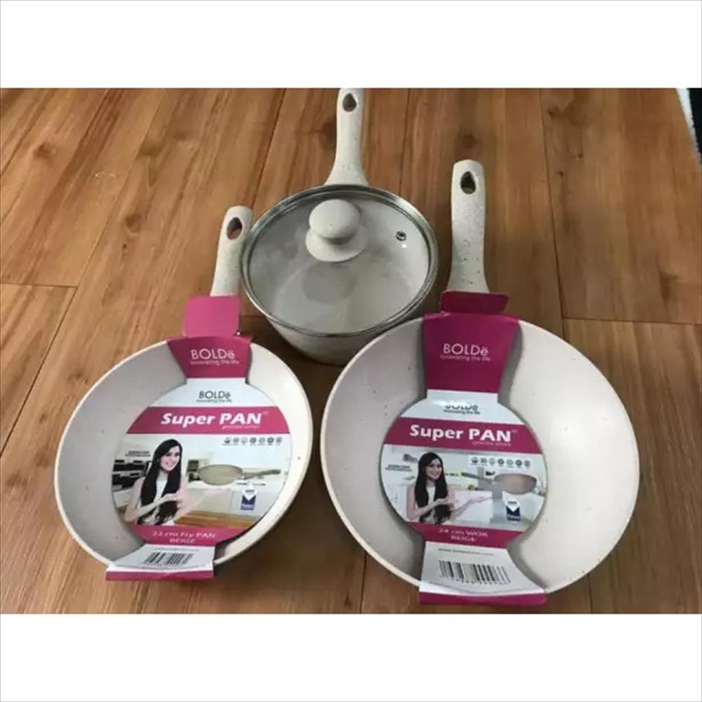 Bolde Panci Wajan Set Super Pan Granite Set Beige 3 + 1 Pcs