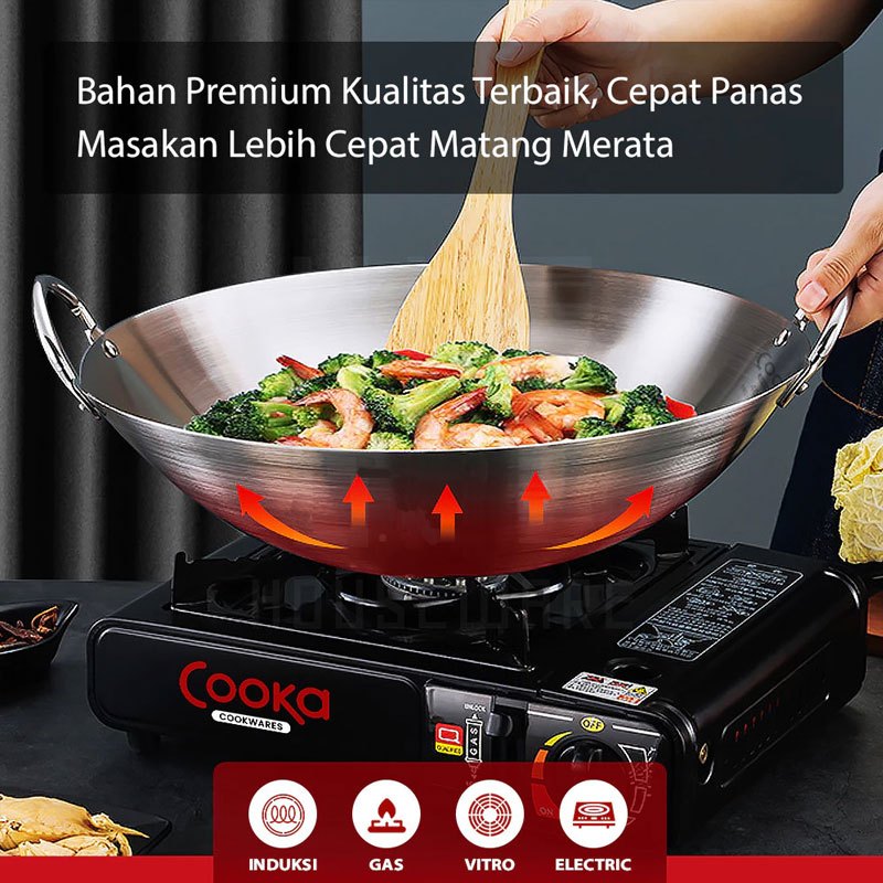 Nyaman Wajan Stainless Steel 555 Besar Katel Anti Lengket Tebal Kuali Premium Dengan Pegangan Kuali