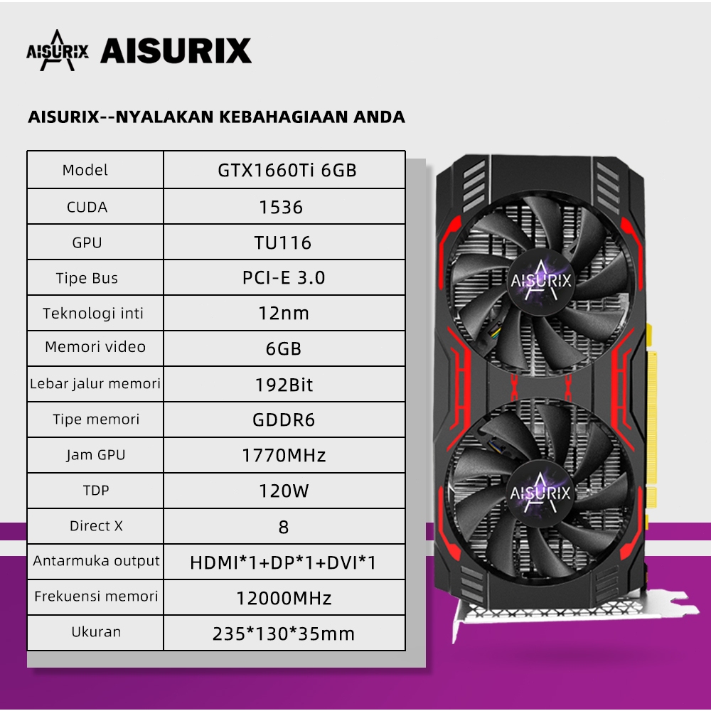 AISURIX NVIDA GTX 1660 TI 6GB VGA Card GDDR6 192BIT - New Video Card For PC Gaming GTX 1660 Super