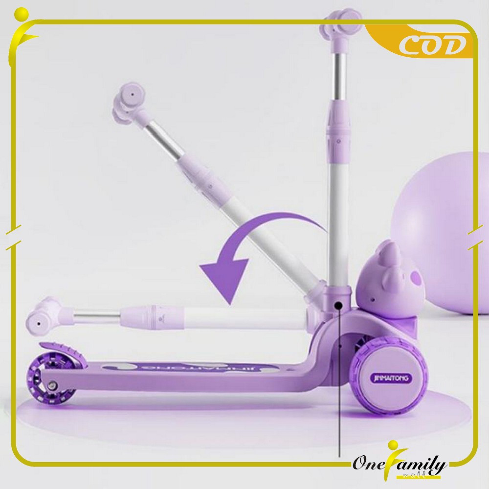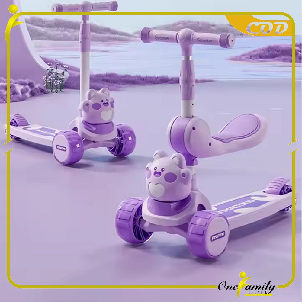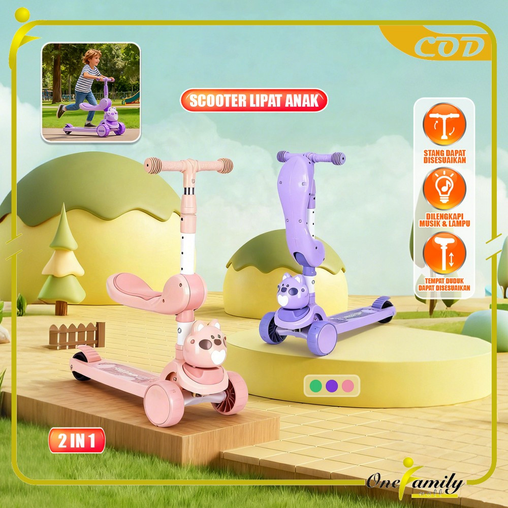 One-M391 Mainan Anak Skuter Lipat 3 Roda Scooter Otoped Karakter / Sepeda Duduk 2In1 Ada Musik Lagu Lampu Scooter Anak O