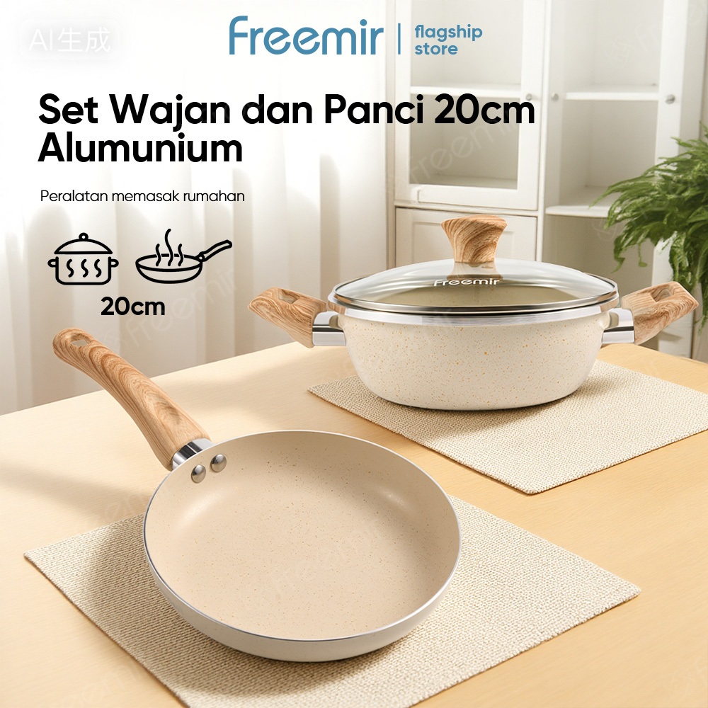 Freemir Set Wajan Penggorengan 16/18/19/20 Cm Anti Lengket Pfoa Free Serbaguna