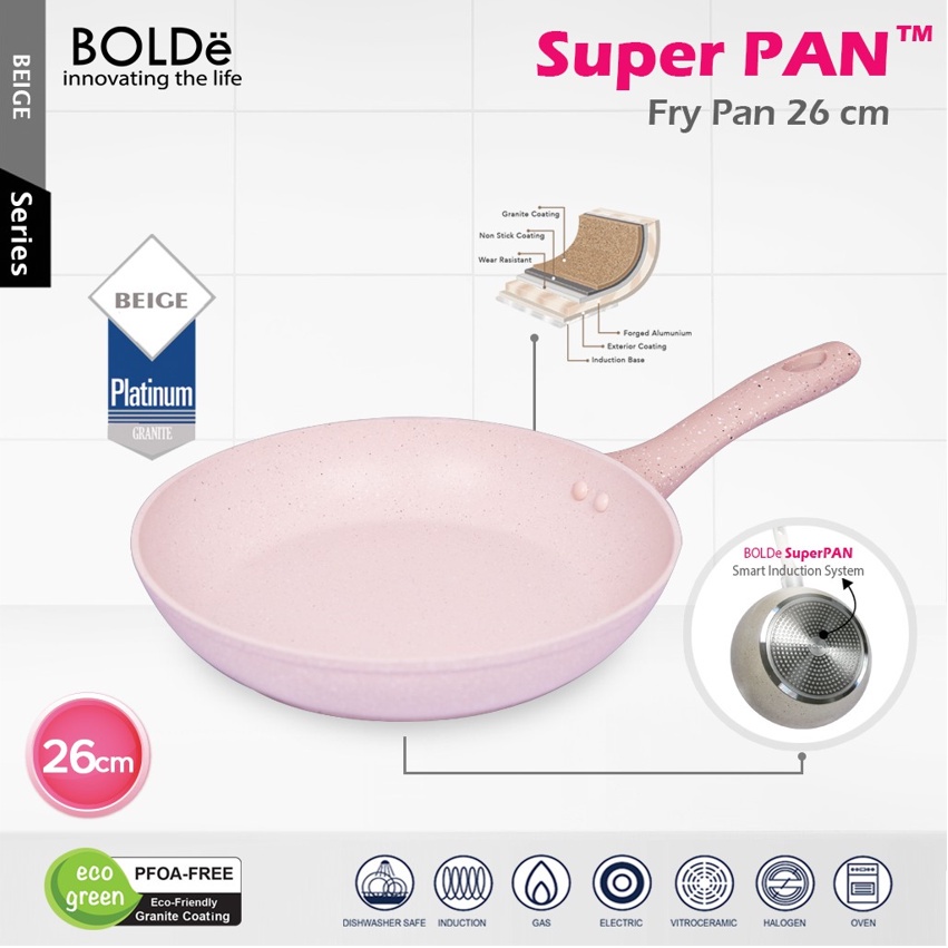 Bolde Wajan Panci Super Fry Pan Frypan 18 22 26 Cm Beige Granite Coating Bisa Untuk Kompor Induksi
