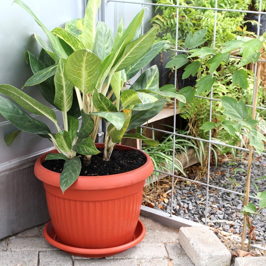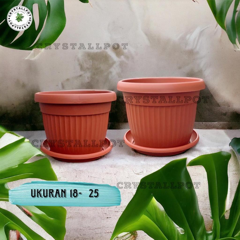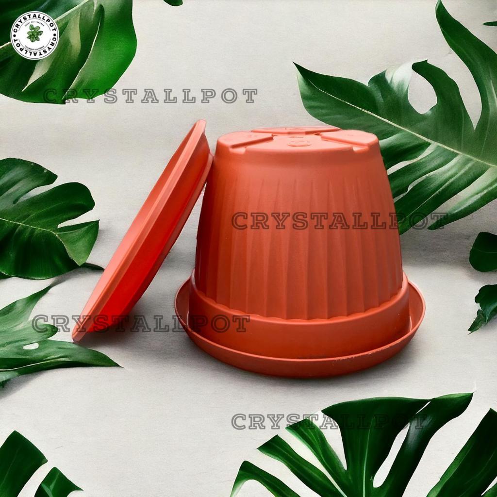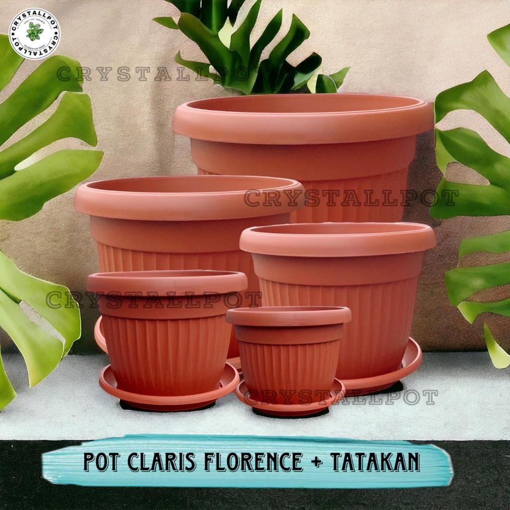 POT BUNGA TANAMAN PLASTIK CLARIS FLORENCE MERAH BATA + TATAKAN BAWAH